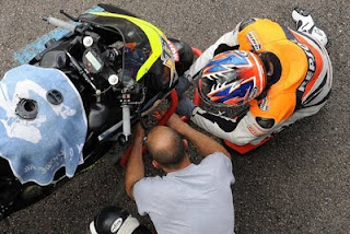 en blijkbaar vonden ze dat erg en hebben ze zijne moto naar de pits gebracht.